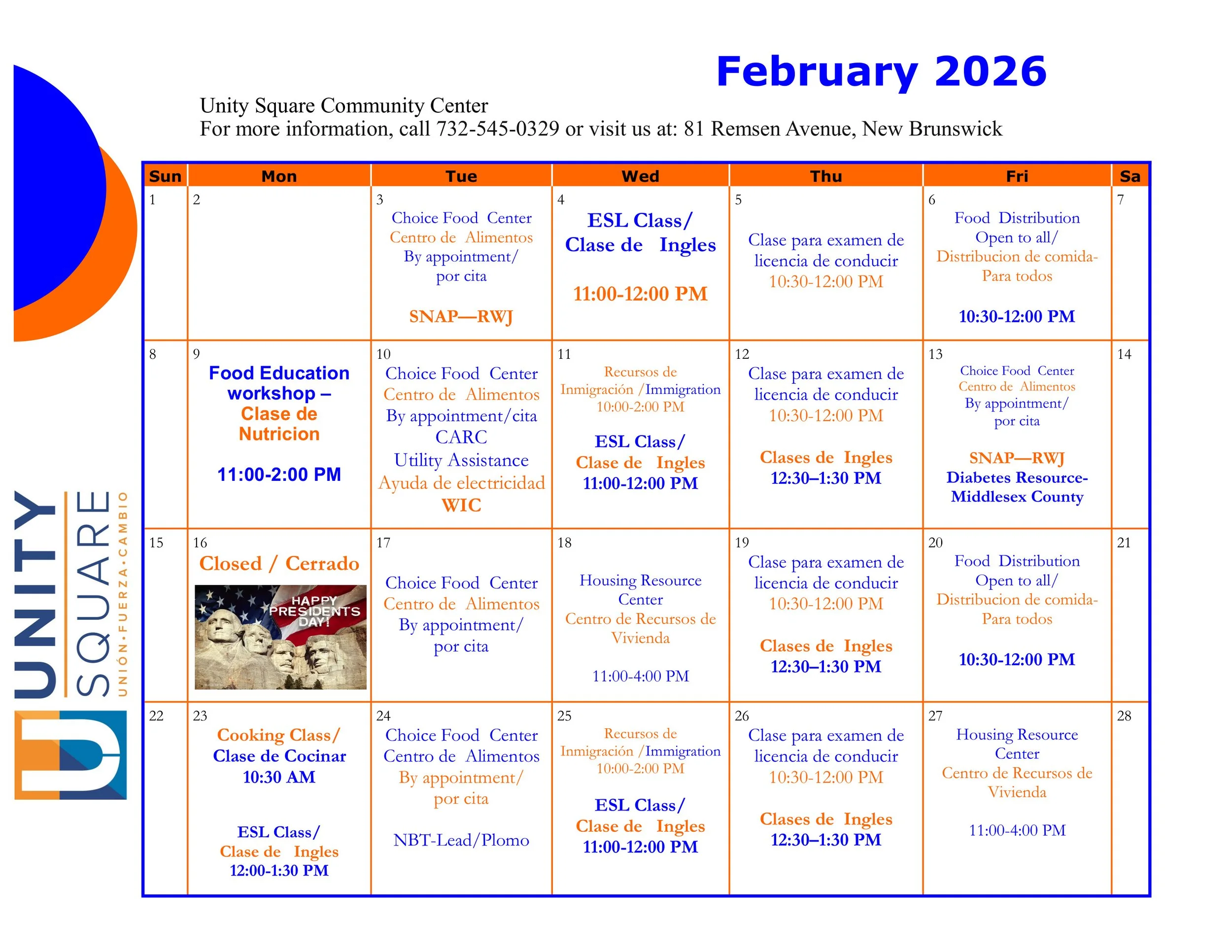 Llamar a Unity Square, 732-545-0329 por una cita